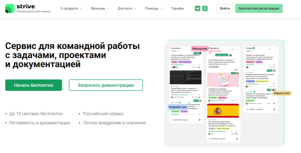 Оцените совместную работу в задачах (комментарии, вложения), доски, роли и приватность, отчёты по времени/нагрузке и простое приглашение участников.