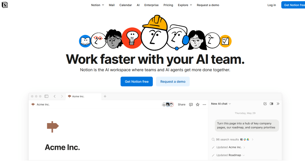 - Достоинства и функции: страницы и подстраницы со свободной структурой; множественные виды отображения; встроенный AI; интеграции с внешними сервисами.